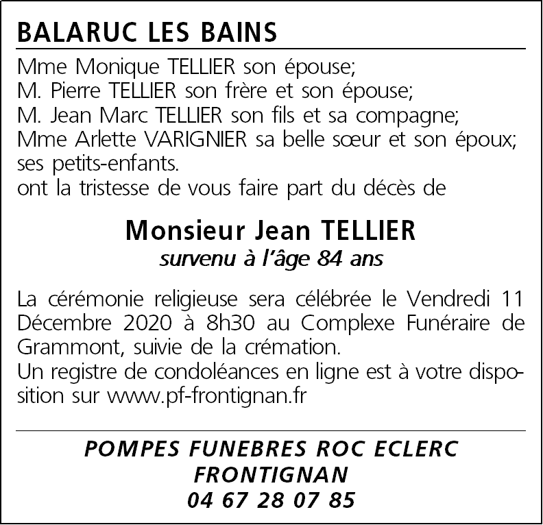 Décédé à Balaruc-les-Bains (34540, France) le lundi 7 décembre 2020 à l'âge de 84 ans
